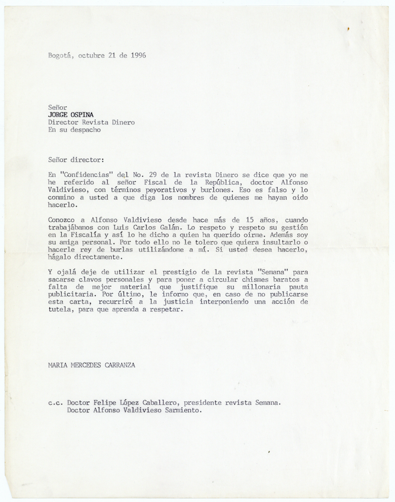 En “Confidencias” del No. 29 de la revista Dinero se dice que yo me