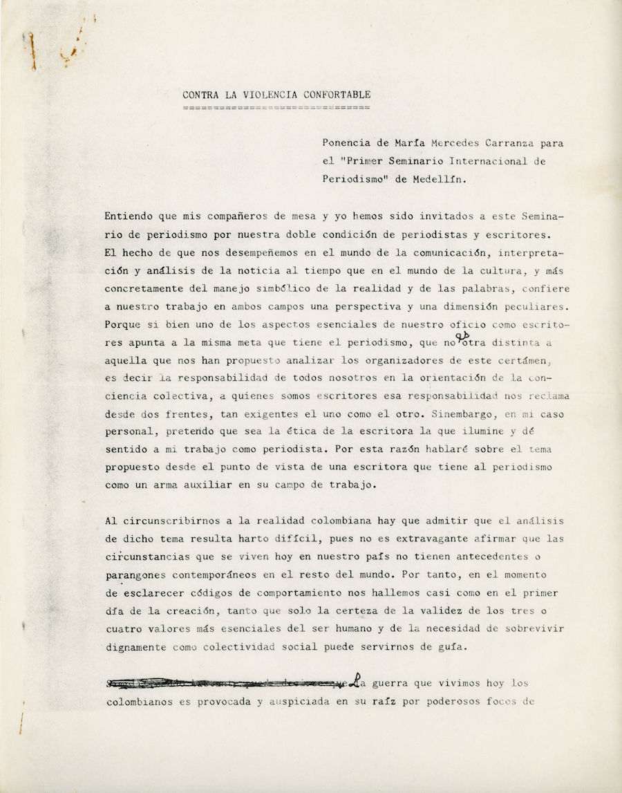 Observaciones al título: Ponencia de «María Mercedes Carranza»