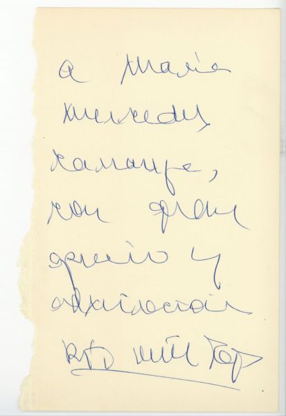 Anotación manuscrita en tinta negra en la cara de la anteportada. Firma “R”, en Madrid, “con Eduardo” el 30 de octubre de 1984.