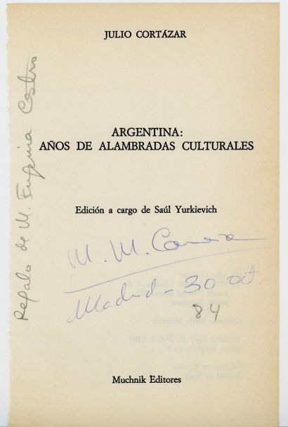 Cortázar, Julio. Argentina: años de alambradas culturales. Ed. Saúl Yurkievich. Barcelona: Muchnik, 1984.