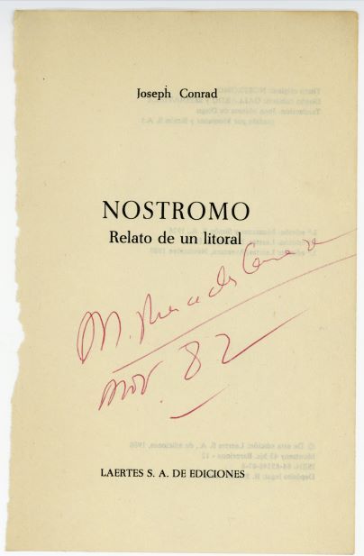Conrad, Joseph. Nostromo: Relato de un litoral. Trad. Juan Mateos de Diego. Barcelona: Laertes, 1980.