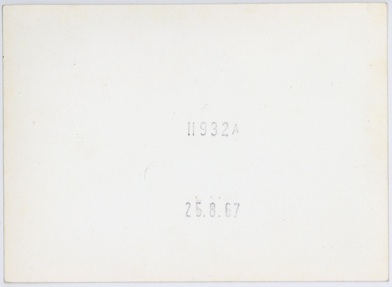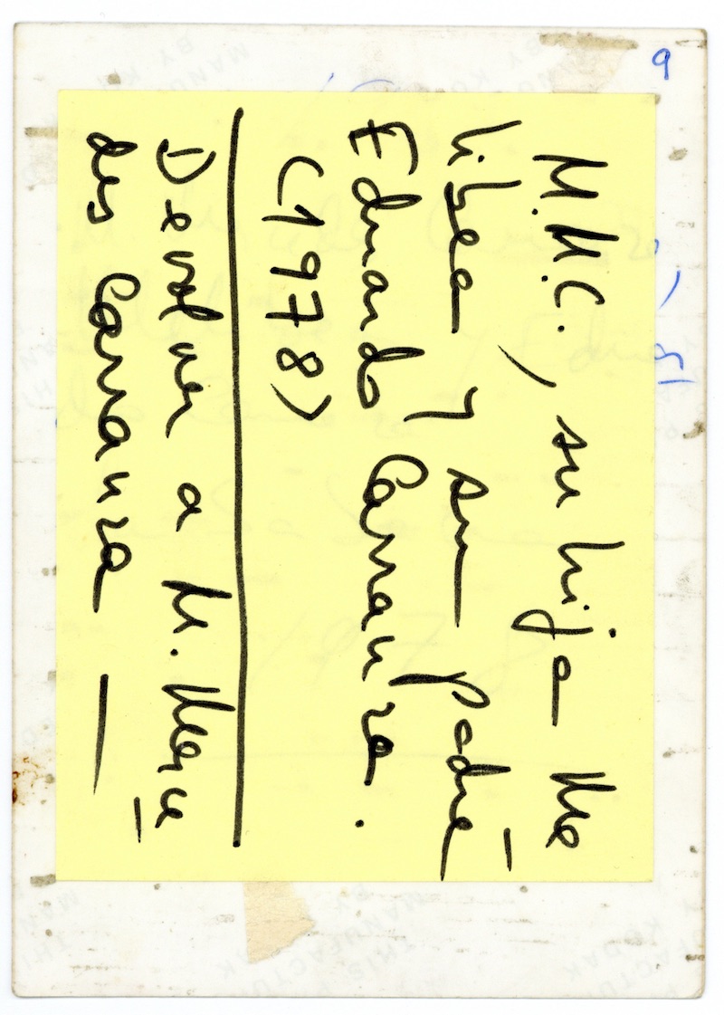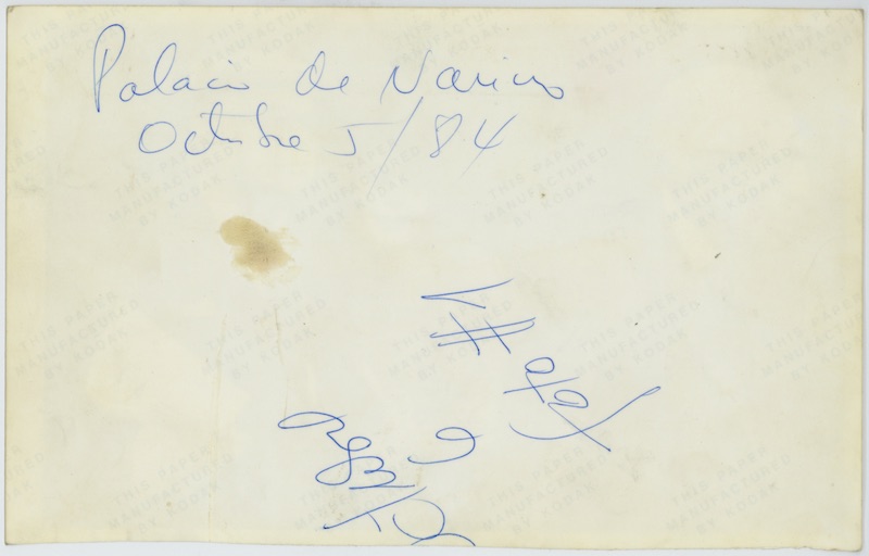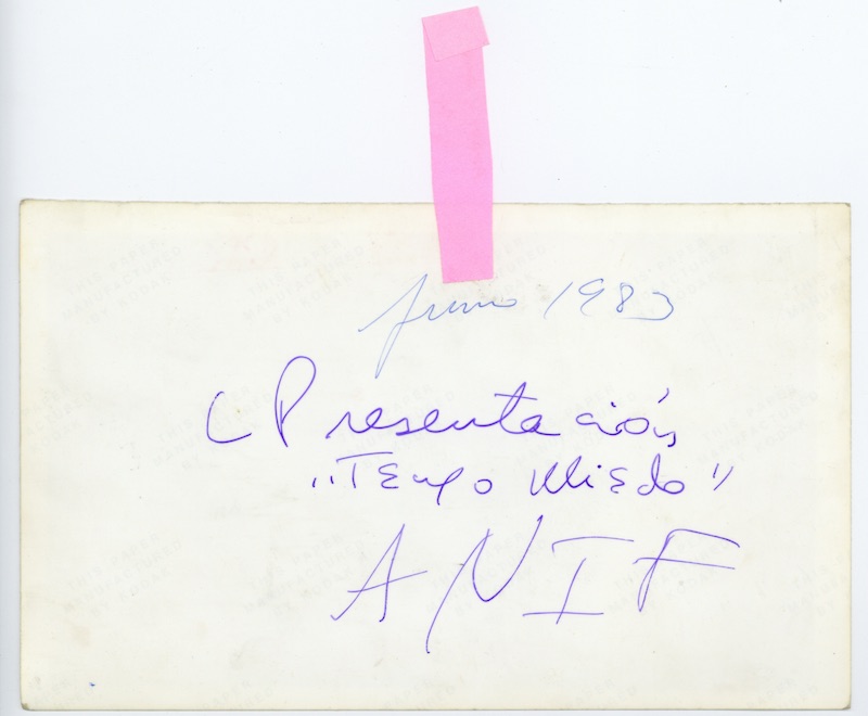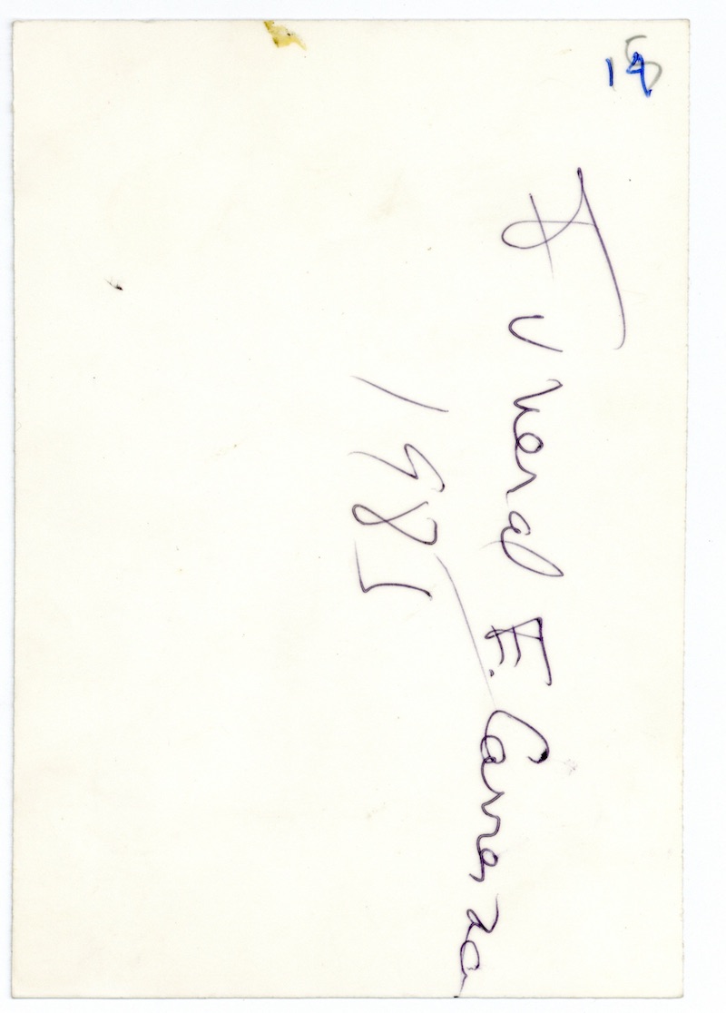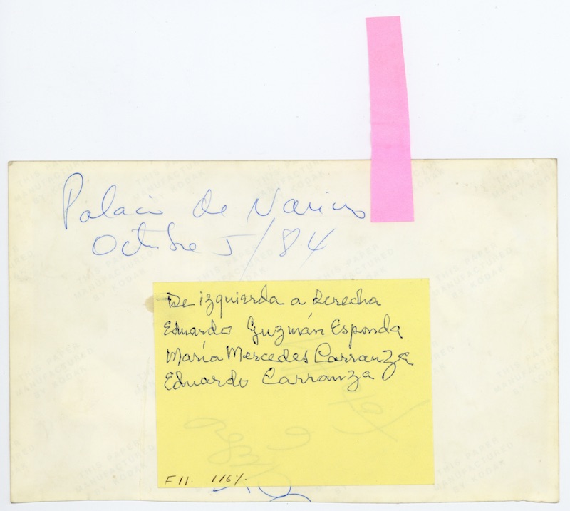 Descripción: Inscripción al respaldo: “Funeral E. Carranza / 1985”, en tinta negra. En la esquina superior derecha tiene escrito el número 15 en lápiz y encima de este se lee el número 14 en tinta azul.