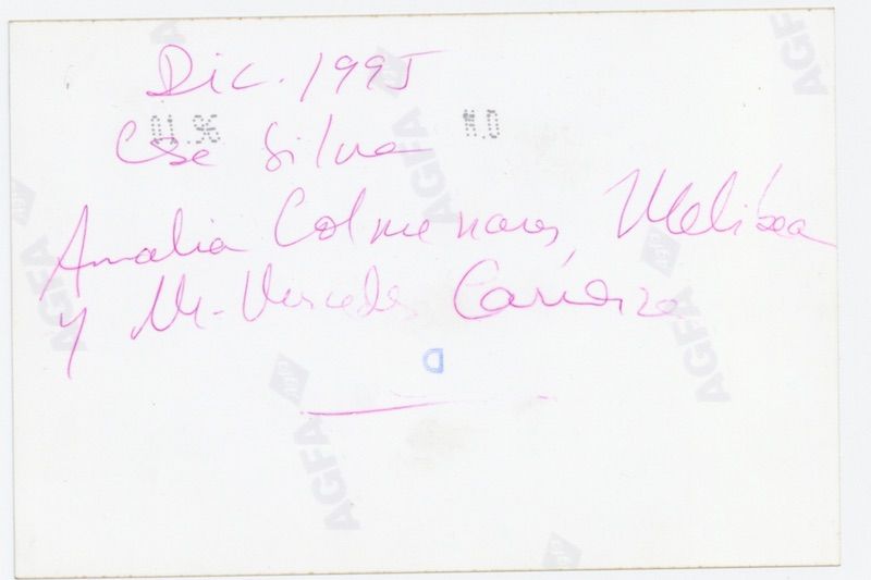 Descripción: Inscripción al respaldo: “Dic. 1995 / Casa Silva / Amalia Colmenares, Melibea y M-Mercedes Carranza”, en tinta rosada.